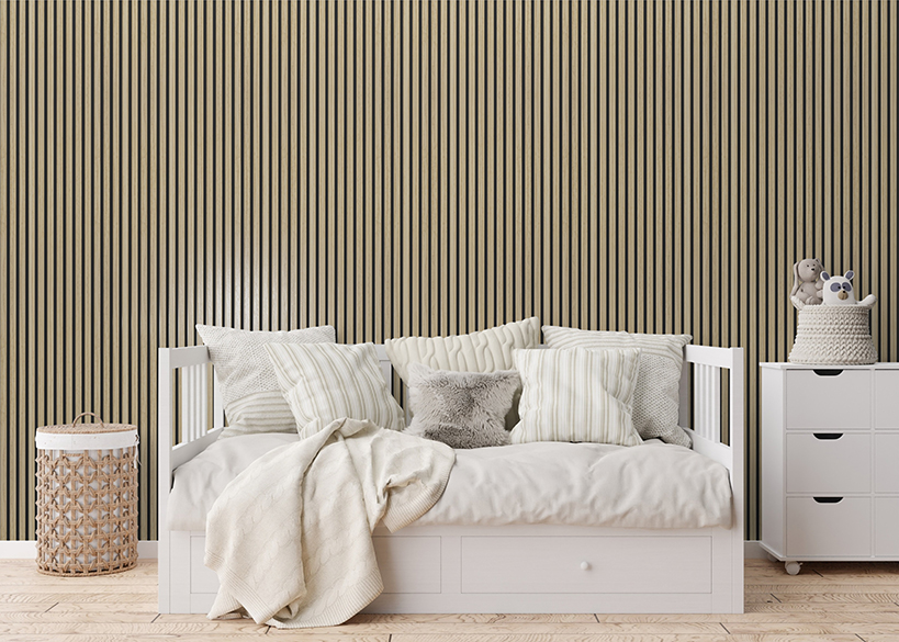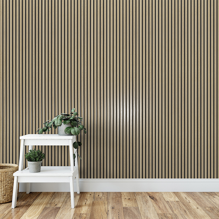 Akustikpaneel - Wandpaneele Full Color | Natural Oak | Braun | schwarzer Filz | 600 x 2600 x 17mm