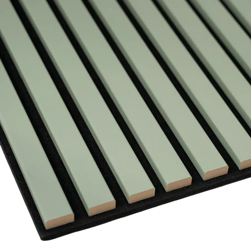 Akustikpaneele - Lamellendekor Pastellgrün mit schwarzem Filz