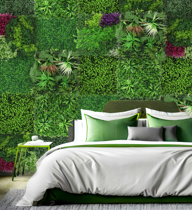 Die Flora Design Paneele begeistern mit ihrer intensiven violetten Blüten- und Pflanzenstruktur und einer naturnahen, lebendigen Optik. Als hochwertige Kunstpflanzen-Installation sind sie dabei vollkommen pflegefrei: Kein Gießen, kein Düngen und keine spezielle Beleuchtung notwendig. So bleibt die ausdrucksstarke Farbwirkung dauerhaft erhalten – ganz ohne Aufwand.