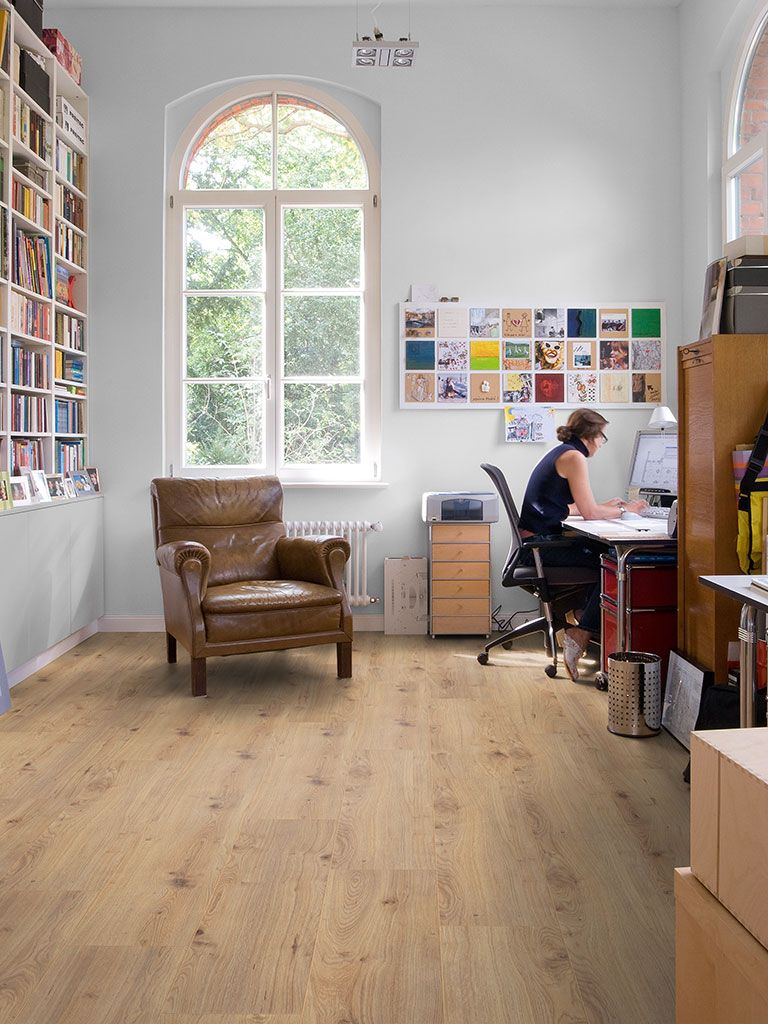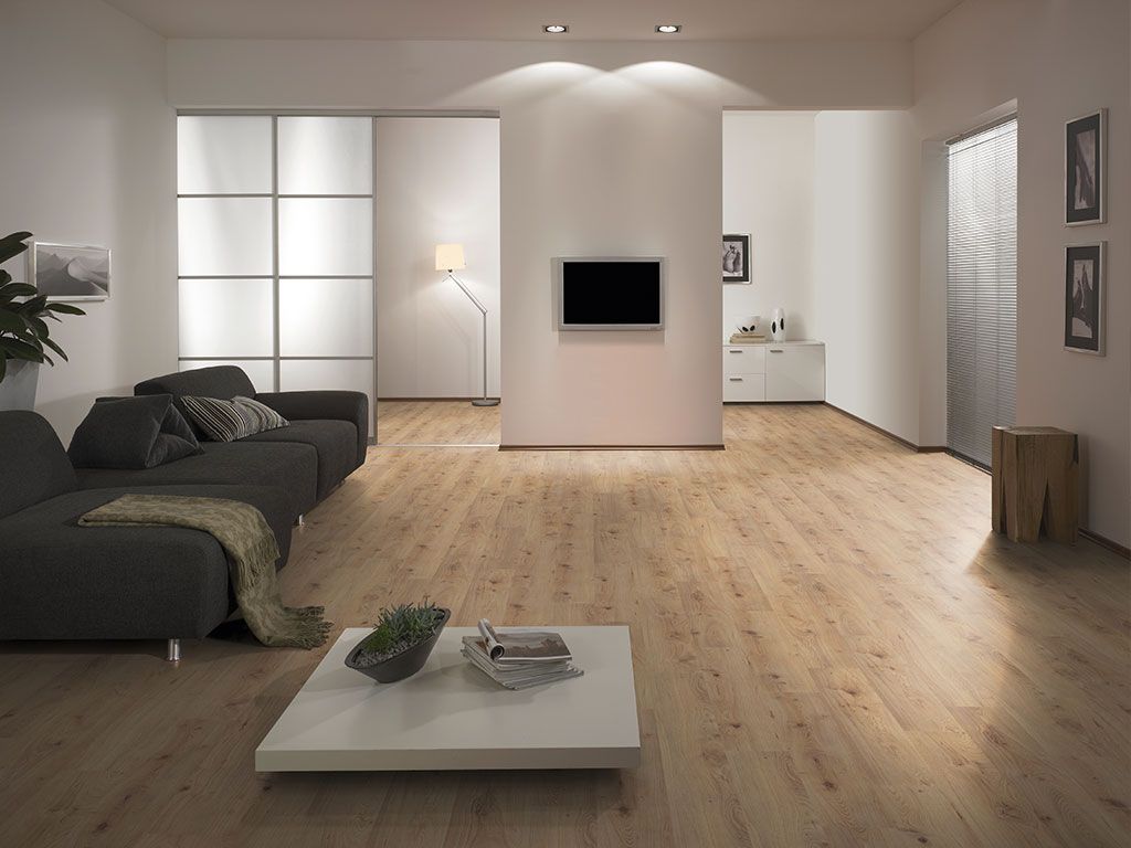 Die Optik der Laminatdielen sorgt für eine harmonische und zeitlose Raumwirkung und lässt sich vielseitig mit verschiedenen Einrichtungsstilen kombinieren – von modern bis klassisch.