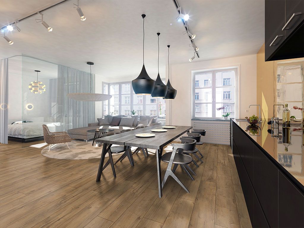 Die 1-Stab-Landhausdielenoptik sorgt für eine ausdrucksstarke und zugleich natürliche Optik. Eine umlaufende 4V-Fuge betont jede einzelne Diele und verstärkt den Eindruck eines echten Holzbodens.