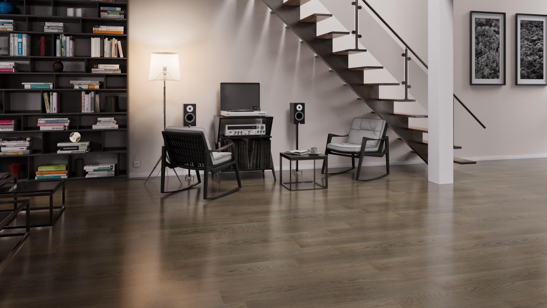 Die dunkle, elegante Holzoptik im Farbton „Midnight Wheat“ verleiht Räumen eine stilvolle und moderne Atmosphäre. Dank Synchronprägung und Echtholzoberfläche entsteht eine besonders authentische Haptik und Optik. Die klassische 1-Stab Landhausdiele mit umlaufender 4V-Fuge sorgt für ein realistisches Dielenbild und unterstreicht den hochwertigen Charakter des Bodens.