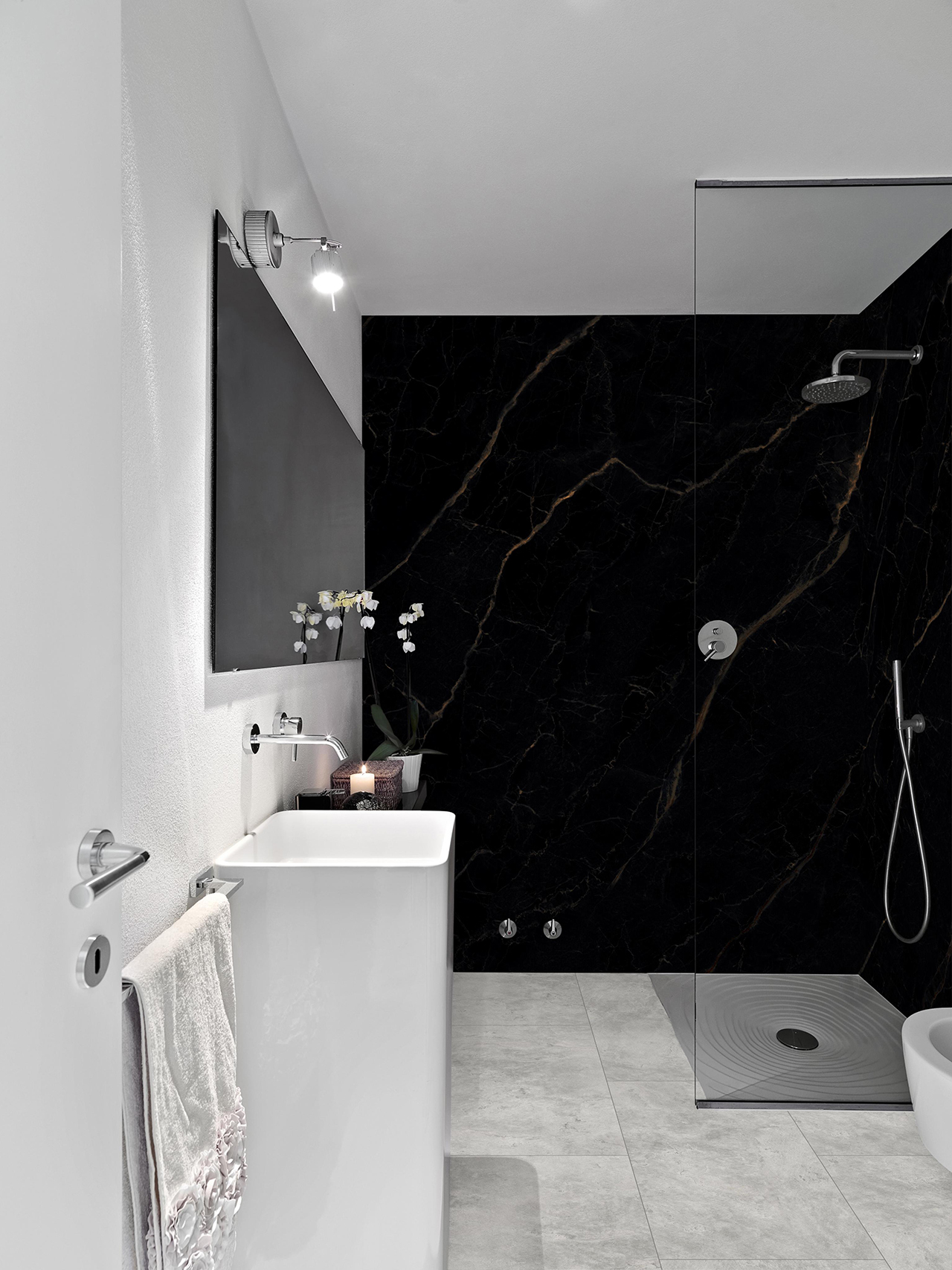 Wandfliese XXL - Check Smart Wall Tile | Marmor Carrara-Schwarz | Matt | 1120 x 3050 x 8 mm
